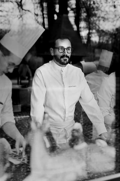 “Au cours de ma formation, j’ai fait des stages au sein de grandes maisons, séduisantes à mes yeux de par leur valeurs humaines fortes, comme celle de Michel Rostang à Paris. J’avais envie de retrouver un cadre de travail et une idée de l’hospitalité que je connaissais déjà dans mon environnement familial. Et en même temps j’avais ce désir de découvrir, d’aller voir ailleurs. Direction donc la Catalogne, chez El Celler de Can Roca à Gérone, tenu par les frères Roca. Puis mon oncle Claude, établi au Brésil, m’a conseillé d’aller voir le chef Thomas Keller dans la Napa Valley, région viticole au nord de San Francisco. Je me suis retrouvé dans une maison exceptionnelle, très organisée, très sérieuse, rigoureuse, avec une super brigade, un changement de menu quotidien, une intensité créative importante et une implication de toute l’équipe. J’ai beaucoup appris sur mon métier, et sur cette culture californienne très métissée, ouverte sur le Pacifique, l’Asie, l’Amérique du Sud et le Mexique.”
